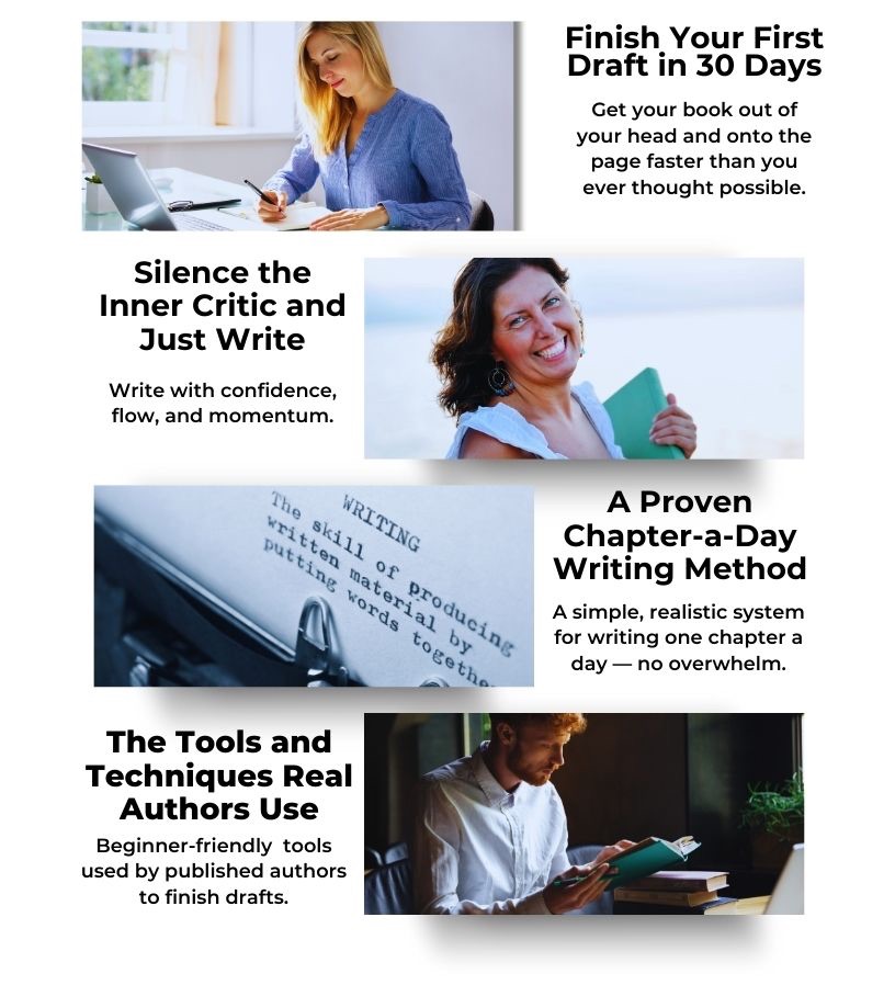 This free training gives you a clear, repeatable system you can use to write your book with confidence in 1/100th of the time!